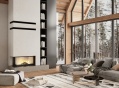 Tā plašais panorāmas logs ļauj baudīt uguns kustību pilnā krāšņumā, piešķirot interjeram greznības un atvērtības sajūtu.