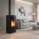 Tas ir centrālapkures granulu kamīns, kas apvieno jaudu ar prestižu dizainu
