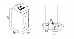 | Minimālais attālums no degošām sienām | sāni: 20 cm • aizmugure: 20 cm • priekšpuse: 100 cm |