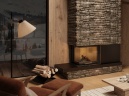 Šis stūra kamīns lieliski iederas plašos interjeros, kur dizains un funkcionalitāte ir vienlīdz svarīgi.