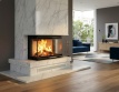 Trīspusējs kamīns ar plašu liesmas redzamību no trim pusēm
