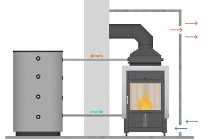 Kamīns ar ūdens apvalku – siltummaiņa princips