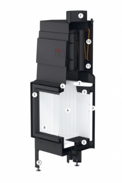 Tā darbojas kā siltuma buferis – uzkrāj siltumu, kad kamīns strādā pilnā jaudā, un atdod to, kad uguns ir izdzisusi.