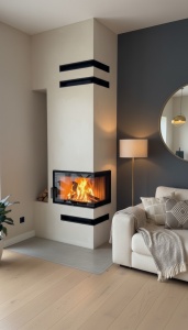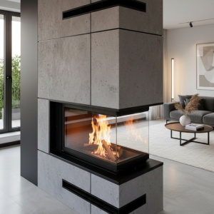 Daudzi klienti izvēlas kamīnu ar lielu stiklu, jo tas vizuāli padara interjeru pievilcīgāku un rada iespaidīgu liesmas panorāmu.