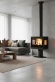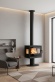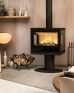 Šis trīspusējais kamīns kļūst par interjera centrālo elementu – dzīvojamās telpas sirdi, kur liesmas rotaļājas stiklā un rada siltu, mājīgu atmosfēru.
